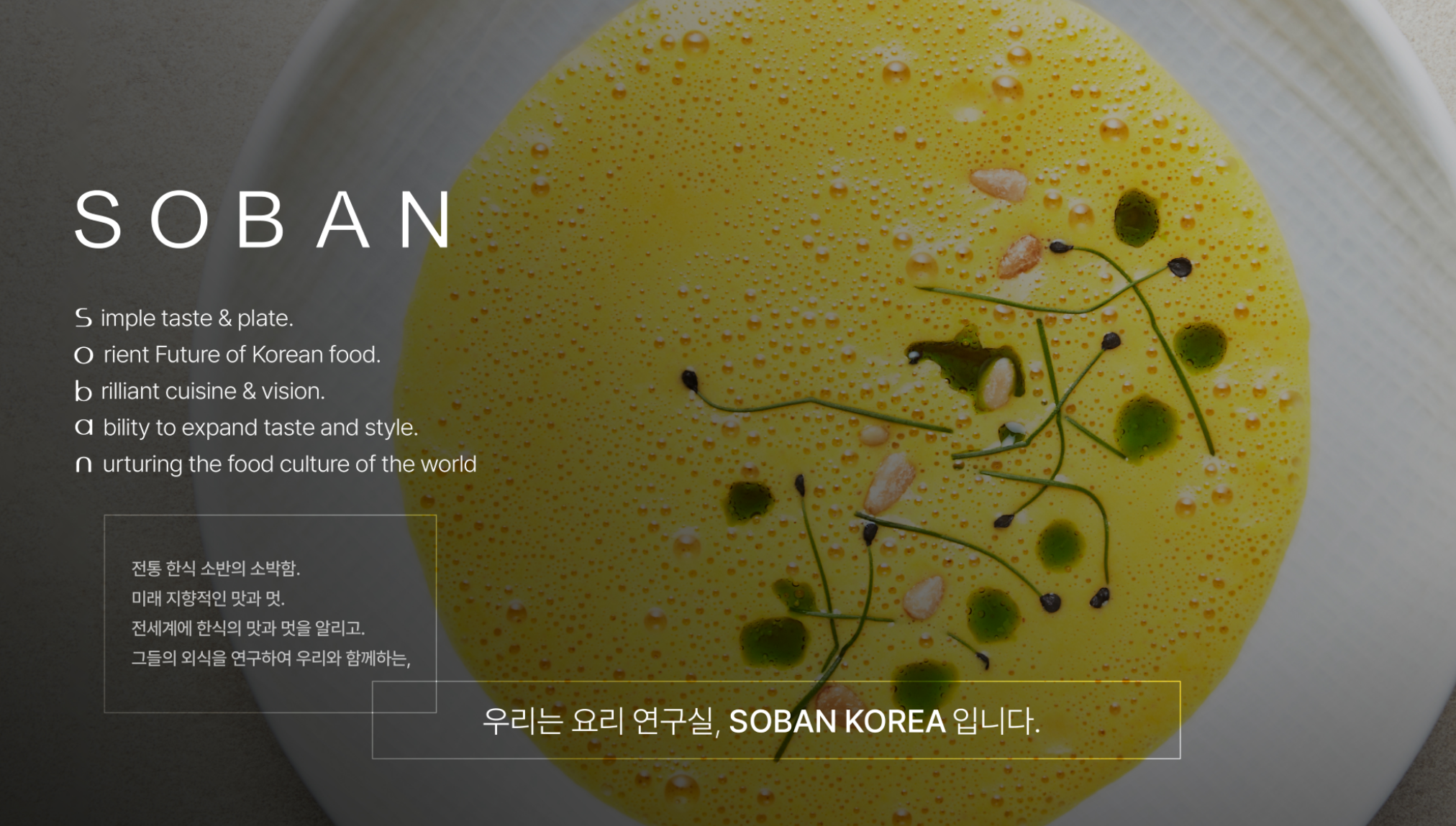 제게 요리란, 단순히 입맛을 사로잡는 기술이 아니라 ‘문화의 깊이를 번역하는 언어’예요. 한국의 미학은 화려함보다 절제에 있고, 긴 여운을 느낄 수 있는 깊은 ‘온도’에 있다고 생각합니다. 저는 그 여운 속에서 한국의 미학을 발견합니다.